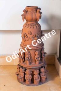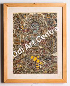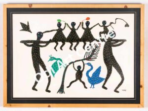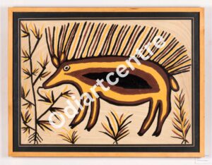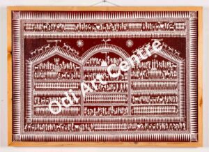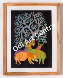 Sanjhi art is famous in uttarpardesh it is made by perforuting a single piec of pepar into different shapes. This are is rleting to lord shreekrishna. shreekrishna while taling cows to the forst, used to rlax under the shade of a tree and play the flute . hearing the sweet sound of flute by lord shreekrishna, all the cows fluag around thim and keenly to the music. the painting describes the scehe.
