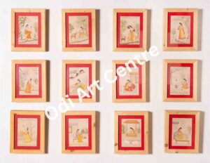 This is miniatur of painting rajastan, very minute details ar shown in these painting using diffirent natural colours. The colour used in these painting are red, yellow, black, violet and blue.These 12 painting show12 month in a year ,baisakh,