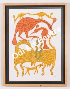 This is the painting of madhubani district of Bihar. So, it is called madhubani painting. this painting narrates a tree and birds on it. trees play as impotant role in our life. it supplies oxygen to all of us. All human beings or wild animals depend a tree. This painting shows many birds and animals.Trees are the symbol of growth, energy ,unity ,stability and beauty . In this painting, love for tree is shown, as the basic need for development of personality and knowledge.